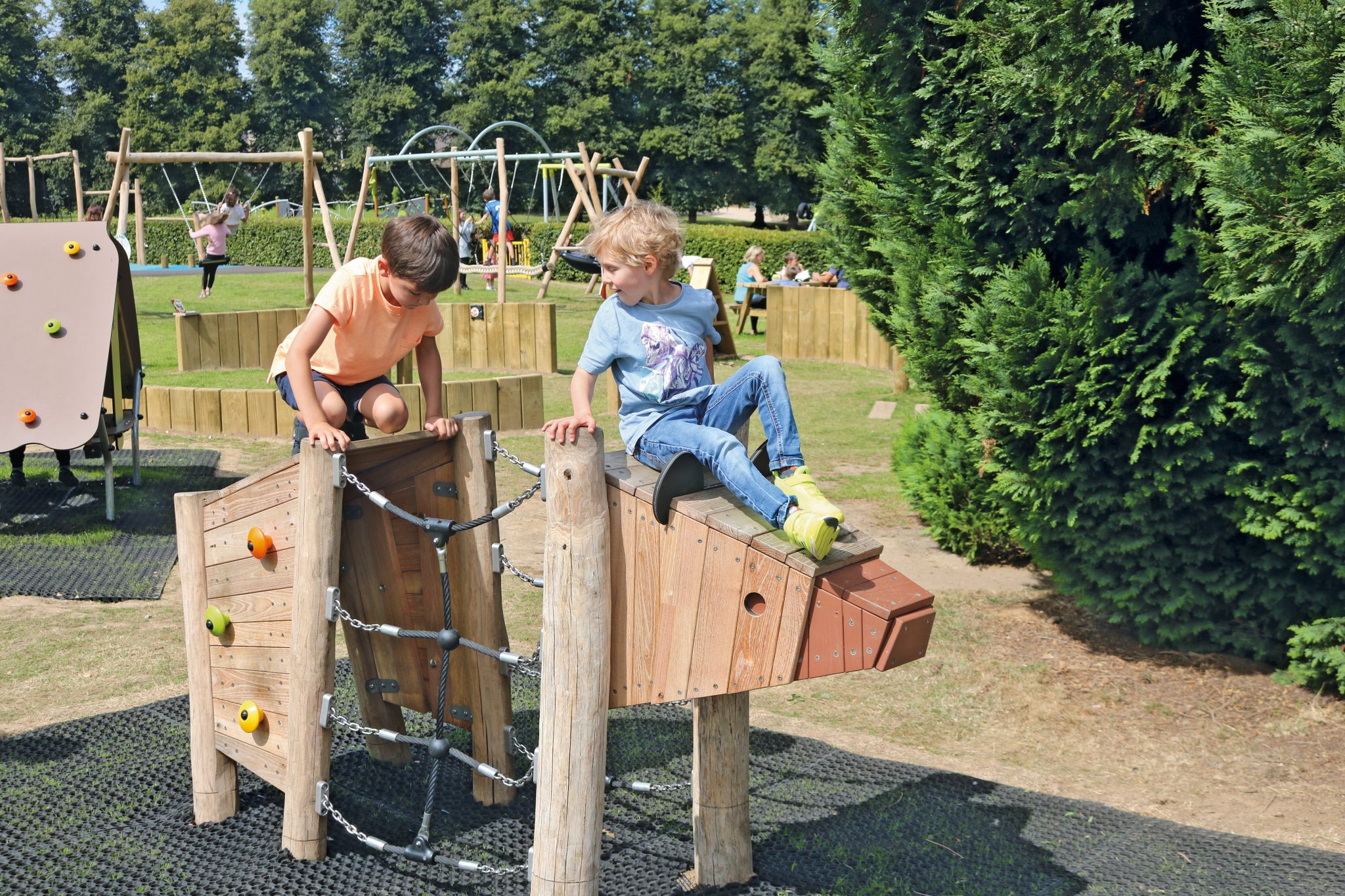 - Spelen zonder grenzen – Klimmen, glijden, balanceren en ontdekken: elk toestel nodigt uit tot avonturen op maat van elke leeftijd. Het speelse ontwerp stimuleert kinderen om hun eigen verhalen te verzinnen terwijl ze opgaan in het spel.